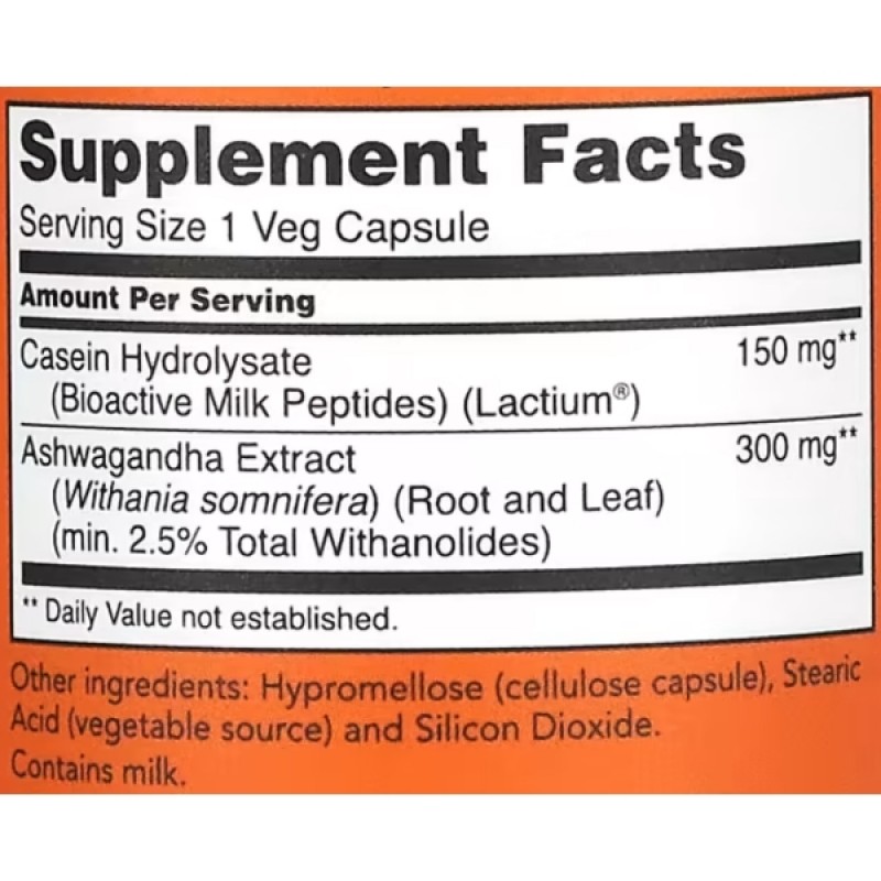 Пищевая добавка от американского бренда Now Foods Ashwagandha Stress Relief содержит Lactium, являющийся молочным белком, прошедшим клинические испытания.