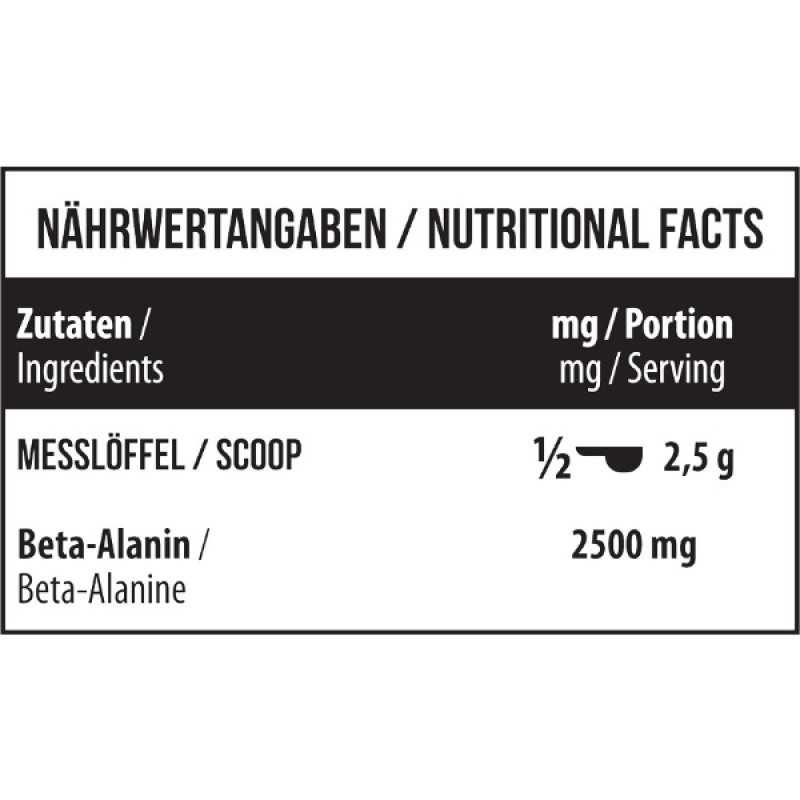 Beta-Alanine RAW от немецкого спортивного бренда MST – биоактивная добавка в виде порошка, в которую входит натуральная необработанная аминокислота бета-аланин. Этот нутриент образуется в организме из карнозина и урацила, поступает извне из мясных, рыбных и молочных продуктов и блюд, а также из пантотеновой кислоты.