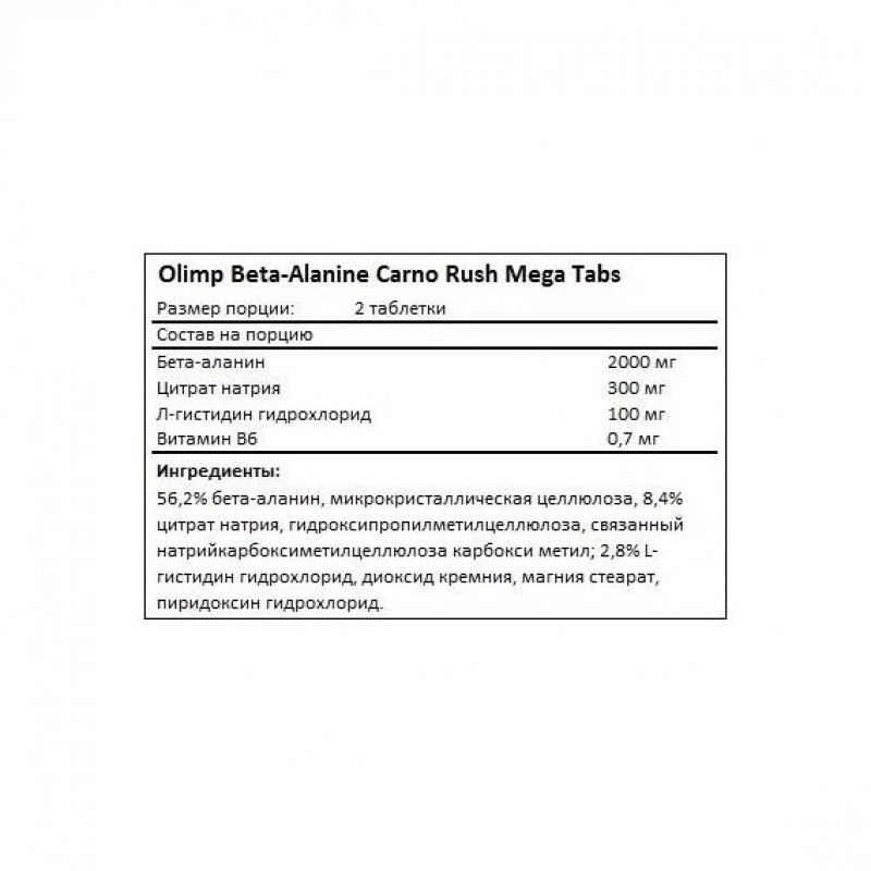 Olimp Beta Alanine Carno Rush - пищевая добавка в капсулах, предназначена для физически активных спортсменов, особенно во время выносливых и силовых тренировок. Продукт обеспечит вас эффективной порцией из 4 грамм чистого бета-аланина. Кроме того, он обогащен L-гистидином и витамином В6.