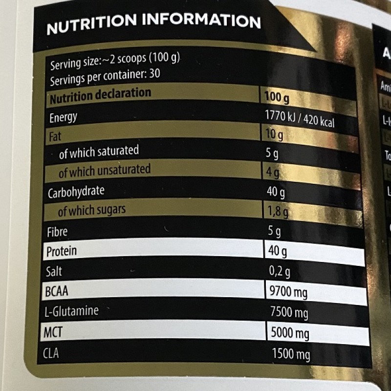 Kevin Levrone Gold Oat Meal содержит высококачественную протеиновую матрицу, состоящую из быстрых и медленных белков для обеспечения бесперебойного снабжения аминокислот в мышечной ткани. Сложные углеводы поступают из овса, обеспечивая достаточную и длительную энергию. В каждой порции гейнера содержится 40 г белка с полноценным аминокислотным профилем и высоким содержанием ВСАА (9,7 г), и 40 г сложных углеводов при минимальном количестве сахара - 1,8 г на порцию. Такой состав автоматически относит данный гейнер в топ подобной продукции. Это тщательно продуманный продукт, который не только соответствует всем мировым стандартам качества, но и превосходит их. Отдельно стоит отметить невероятные вкусовые качества Gold Line целом и Kevin Levrone Gold Oat Meal в частности, которые получили множество положительных отзывов.