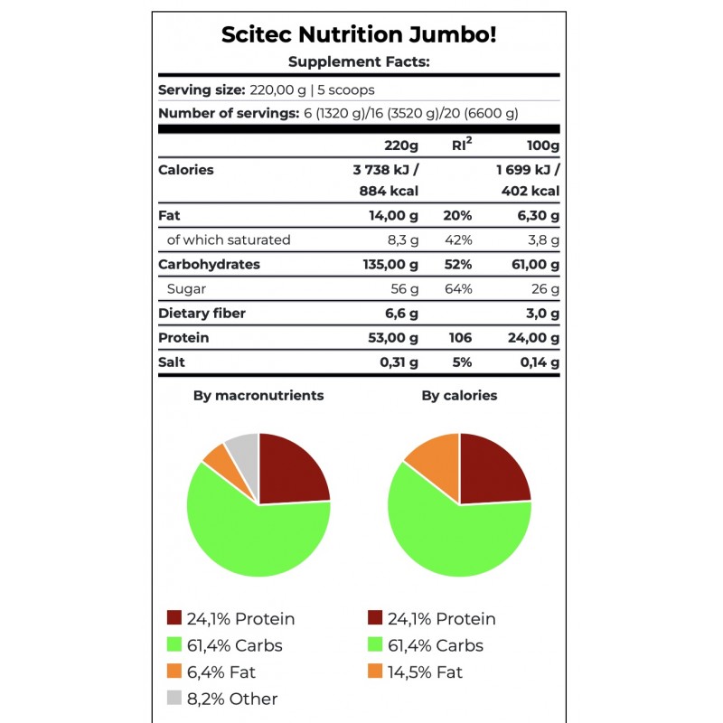 Гейнер Scitec Nutrition Jumbo 3520 g /16 servings/ Vanilla