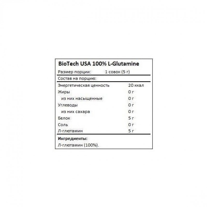 Глютамин постоянно циркулирует в организме человека и уровня, который человек получает из пищи, вполне достаточно при спокойном и размеренном образе жизни. Нагрузки, которые выдерживает атлет в спортивном зале резко снижают уровень этой аминокислоты, что сказывается на результативности занятий. ПриемBiotech USA L-