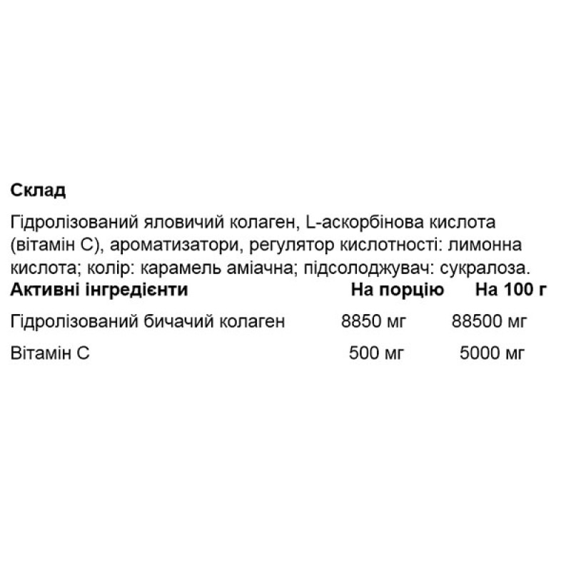 Коллаген является одним из основных белков в человеческом теле, обеспечивает нормальное формирование тканей, а также их прочность. Дополнительный прием коллагена способствует регенерации хрящей, укрепляет связки, снижает риск возможных повреждений и уменьшает болевые ощущения при полученных травмах. Collagen + Vitamin C от OstroVit также способствует эластичности, здоровому состоянию и виду кожи. Витамин С в составе продукта стимулирует дополнительный синтез коллагена, оказывает положительное влияние на иммунитет и нервную систему, а также антиоксидантный эффект.