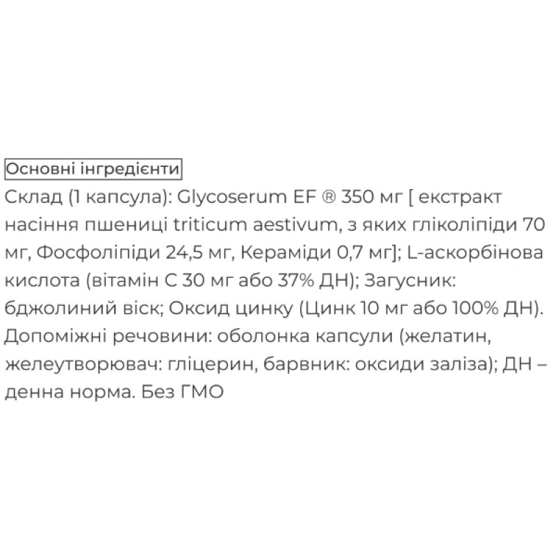 ACTIV ANTI RIDES - диетическая добавка на основе Glycoserum EF ®, витамина С и цинка, которые, действуя в эпидермисе, устраняют морщины и "гусиные лапки". Glycoserum EF® состоит из гликолипидов, фосфолипидов и керамидов, структурных молекул кожи. Его эффективность для внешнего вида и комфорта кожи была доказана научными исследованиями.