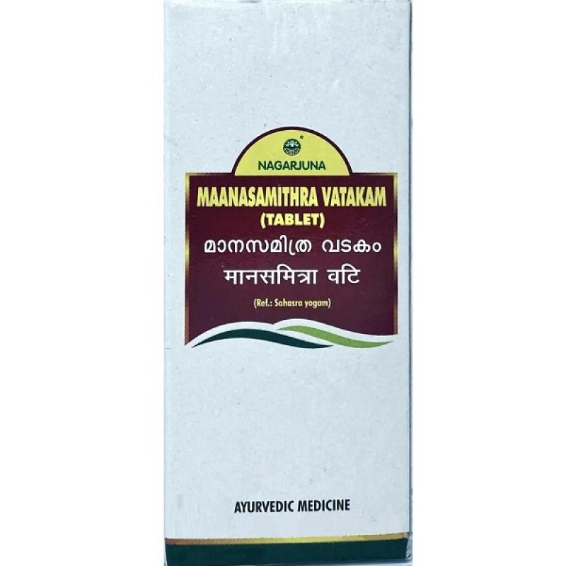Maanasamithra Vatakam Nagarjuna (Маанасамитра Ватакам) – это сложный растительно-минеральный состав классической Аюрведы, используемый для лечения различных нервных и психических заболеваний, психосоматических расстройств, нарушений в работе мозга в результате стресса, хронической тревожности, депрессии, эпилепсии, наркотических зависимостей. Препарат оказывает выраженное успокаивающее и балансирующее действие на нервную систему. Защищает клетки головного мозга от повреждений и улучшает его работу, способствует развитию умственных способностей, речи, повышает концентрацию и обучаемость.