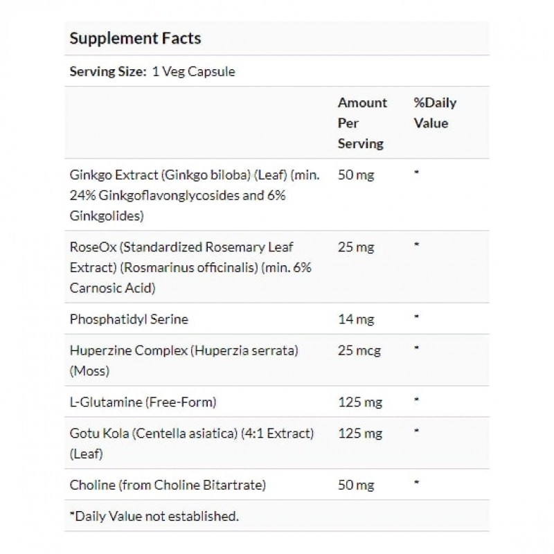 Формула NOW Brain Elevate разработана на основе результатов научных исследований для поддержания здоровых мозговых функций. Brain Elevate содержит гингко билоба и RoseOx — два растительных экстрактах, известных своими свойствами нейтрализации свободных радикалов. В формулу этого продукта входят фосфатидилсерин, L-глютамин и холин, которые являются питательными веществами, критически важными для мозга и обеспечивающими оптимальные результаты.