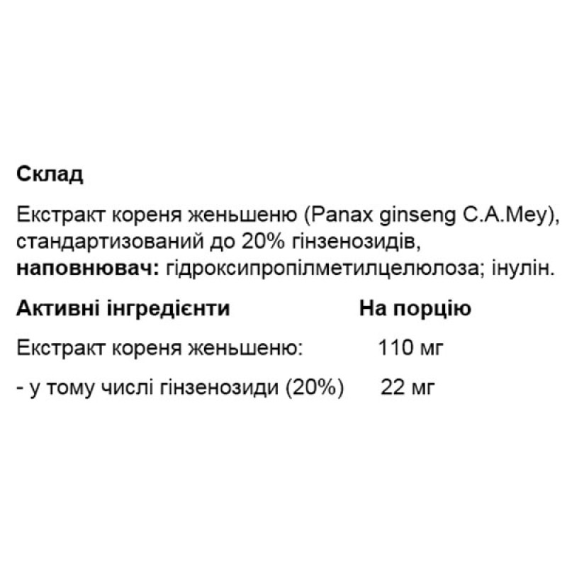 - Содержит экстракт женьшеня - одна порция пищевой добавки обеспечивает организм 110 мг экстракта женьшеня, стандартизированного до 20% гинзенозидов.