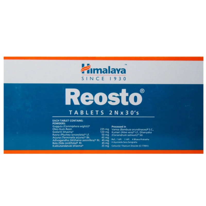 Reosto Himalaya (Реосто) – это аюрведический фитокомплекс с кальцием и минералами для укрепления костной ткани, использующийся при переломах и остеопорозе.