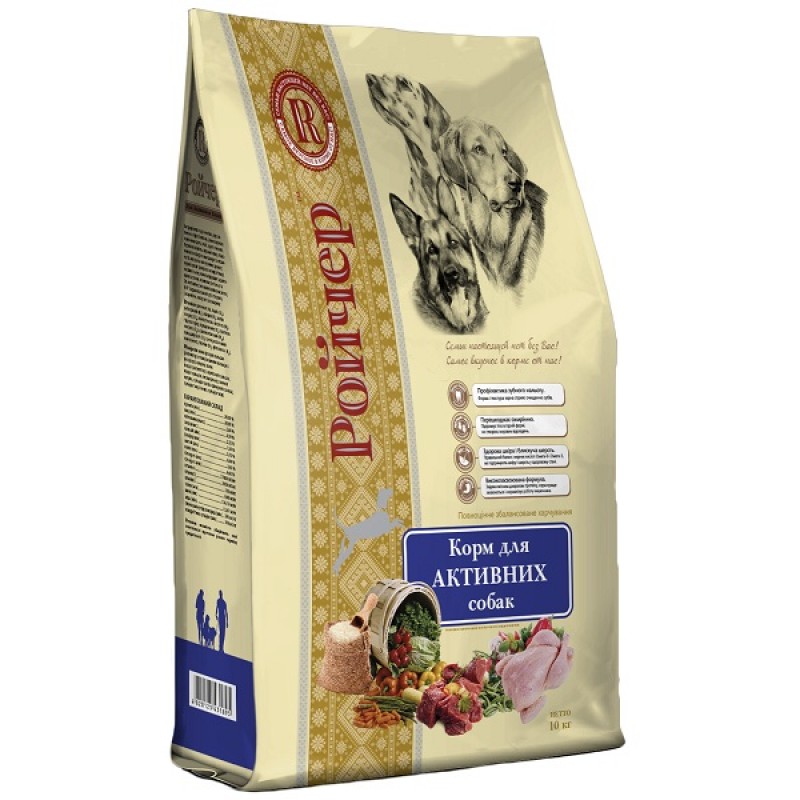 Корм «Ройчер» для активных собак был специально разработан для атлетически развитых взрослых собак с умеренной или повышенной физической активностью. Данный корм идеально подходит как для охотничьих и служебных пород, так и для живущих собак и в зимний период снаружи здания. Высокая усвояемость данного продукта вместе с оптимальным уровнем элементов обеспечит вашей собаке хороший обмен веществ, поддержание иммунной системы, прекрасную физическую форму и здоровую шерсть.