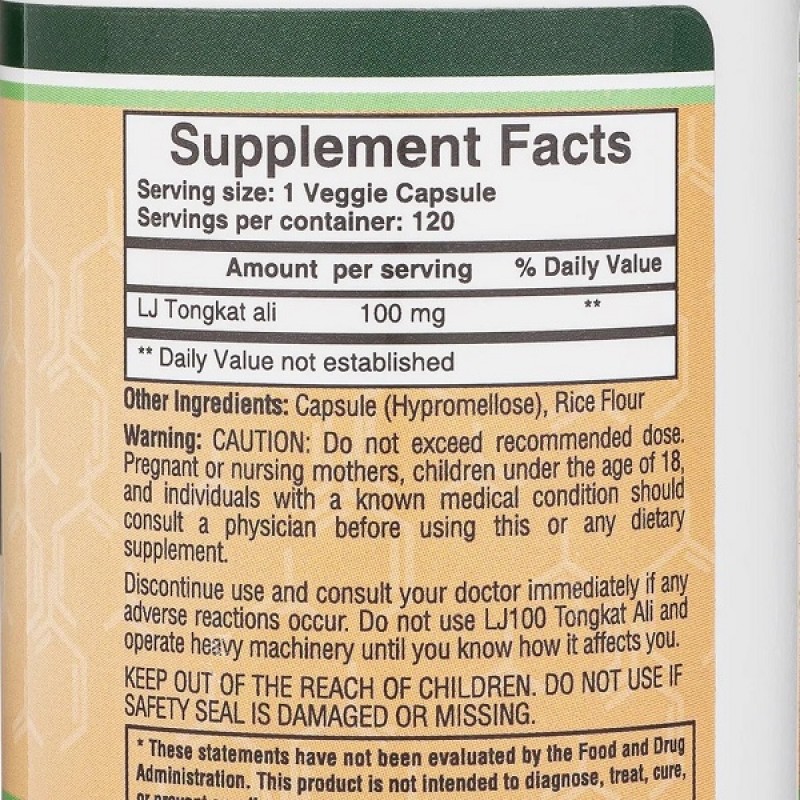 Экстракт LJ100 является одним из самых мощных и хорошо изученных экстрактов Тонгкат Али на рынке и стандартизирован до 22% биоактивных эврипептидов и 40% гликосапонинов. Он намного более эффективен, чем обычный экстракт Тонгката, поэтому требуется гораздо меньшая доза.