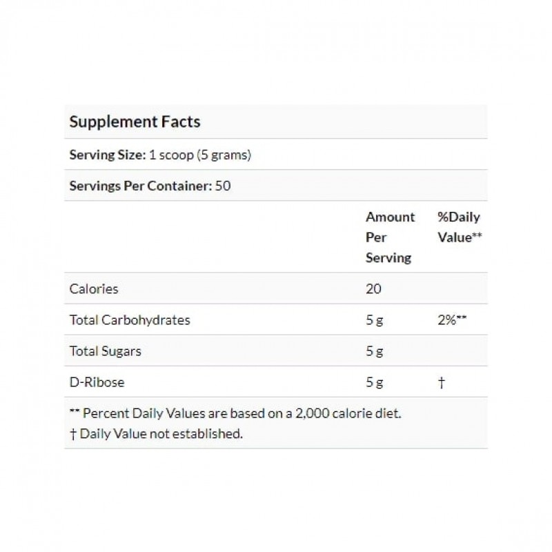 Рибоза - это уникальный углевод из группы пентоз, являющийся фундаментальным строительным материалом для АТФ (аденозинтрифосфат), источника энергии для клеток. Рибоза является отправной точкой и ограничением скорости соединения в синтезе этих основных клеточных соединений. Наличие рибозы определяет скорость, с которой они могут быть созданы нашими клетками и тканями. Исследования показали, что добавки с рибозой могут повысить уровень сердечной энергии и поддержать обмен сердечно-сосудистой системы.