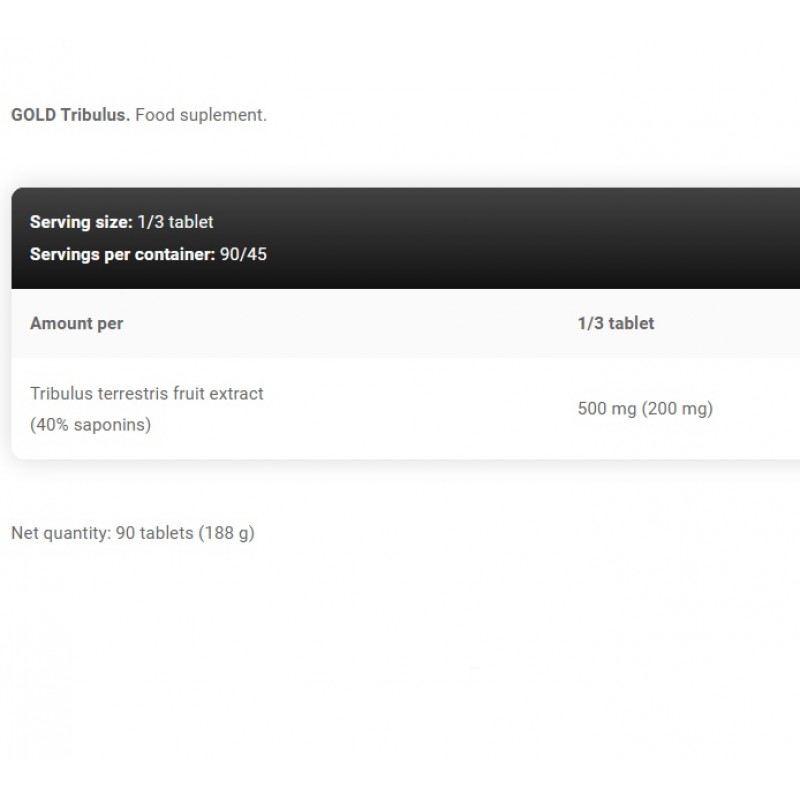 Это удобный источник высококачественного экстракта Tribulus terrestris. Экстракт, используемый в добавке, стандартизирован до 40% содержания ценных стероидных сапонинов.