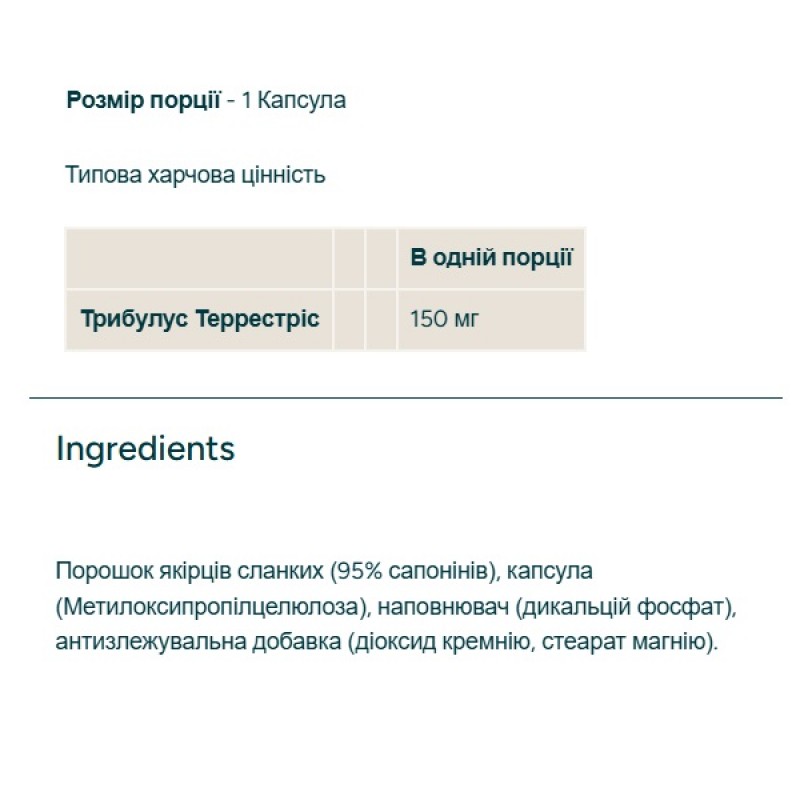 - Трибулус террестрис - 300 мг