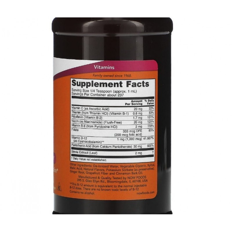 Витамин В12, Liquid B - 12, Now Foods - это пищевая добавка, которая содержит полный комплекс витаминов группы В, : витамин В6, витамин В12, ниацин, рибофлавин, фоллиевую кислоту, пантотеновую кислоту, а также витамин С. Витамины группы В очень важные для производства энергии, поддержки здорового метаболизма гомоцистеина, и его низких уровней, а также для укрепления нервной системы, поддержки работы сердечно-сосудистой и иммунной систем.