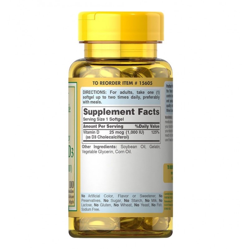 PURITAN'S PRIDE VITAMIN D3 1000 IU НЕ СОДЕРЖИТ ИСКУССТВЕННЫХ КРАСИТЕЛЕЙ, ПОДСЛАСТИТЕЛЕЙ И ВКУСОВЫХ ДОБАВОК, КОНСЕРВАНТОВ, САХАРА, КРАХМАЛА, МОЛОКА, ЛАКТОЗЫ, ГЛЮТЕНА, ПШЕНИЦЫ, ДРОЖЖЕЙ, РЫБЫ, НАТРИЯ.