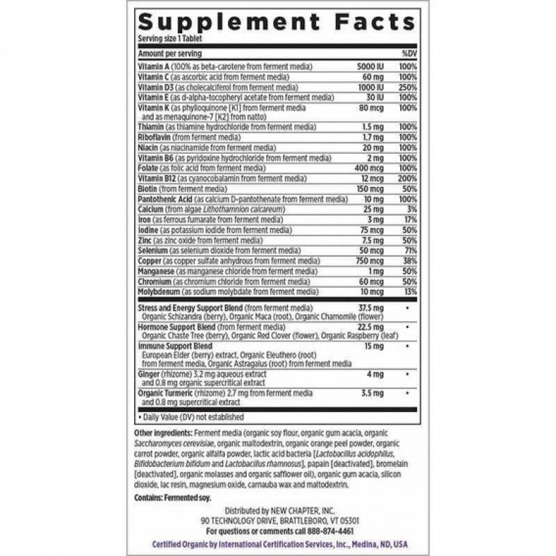 Ежидневные витамины для женщин, Every Woman's One Daily Multi, New Chapter - это цельный витаминный комплекс, способствующий оптимальному здоровью женщин.Комплекс содержит органические травы, овощи, витамины и минералы из цельных продуктов с питательными веществами для борьбы со стрессом, укрепления иммунной и костной системы. Органические витамины и минералы, предназначены для обеспечения здоровья всех органов и систем.