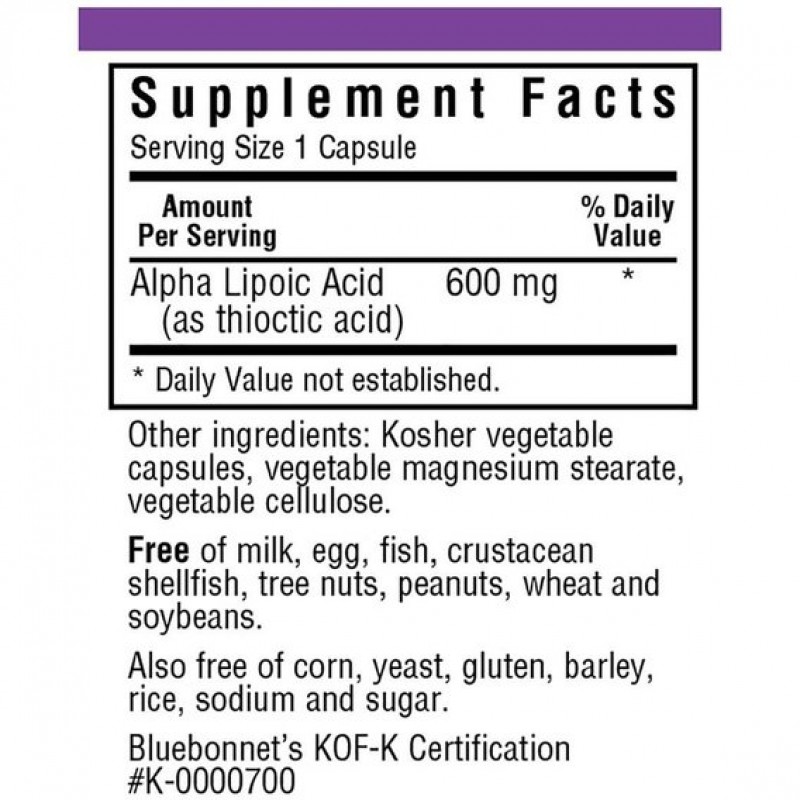 Альфа-липоевая кислота Bluebonnet Nutrition Alpha Lipoic Acid 600 mg 30 Veg Caps BLB0855