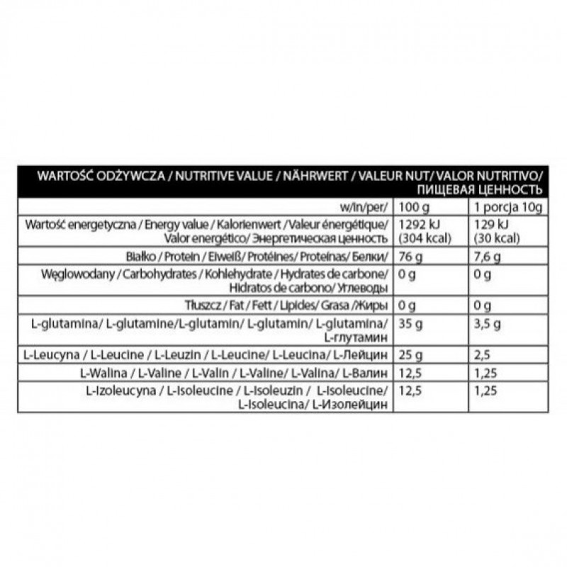 BCAA XTRA - выполнены стандартной рабочей пропорции 2:1:1. Никакой другой продукт не предлагает такое количество глютамина, что делает BCAA XTRA весьма привлекательным предложением. Глютамин весьма распространенная аминокислота в нашем организме. Однако подача в спортивном питании поможет Вам вырабатывать иммуноглобулины, строить мышечные волокна, бороться с катаболизмом.