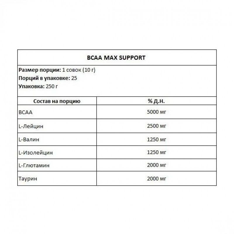 Также производитель добавил в состав BCAA Max Support аминокислоту таурин. Исследования показывают, что прием аминокислот ВСАА вместе с таурином не только способствует мышечному росту, но и ускоряет сжигание подкожного жира.