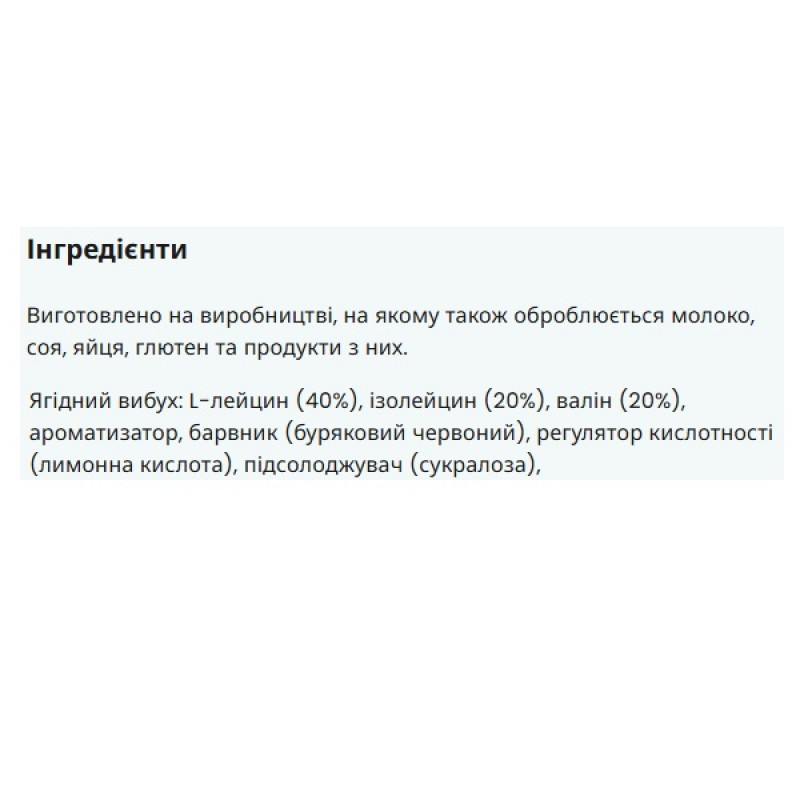 - Соотношение лейцина, изолейцина и валина 2:1:1;