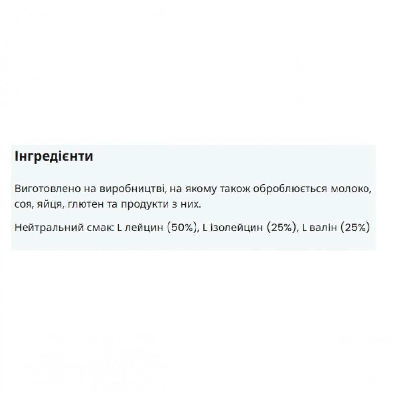 - Соотношение лейцина, изолейцина и валина 2:1:1;