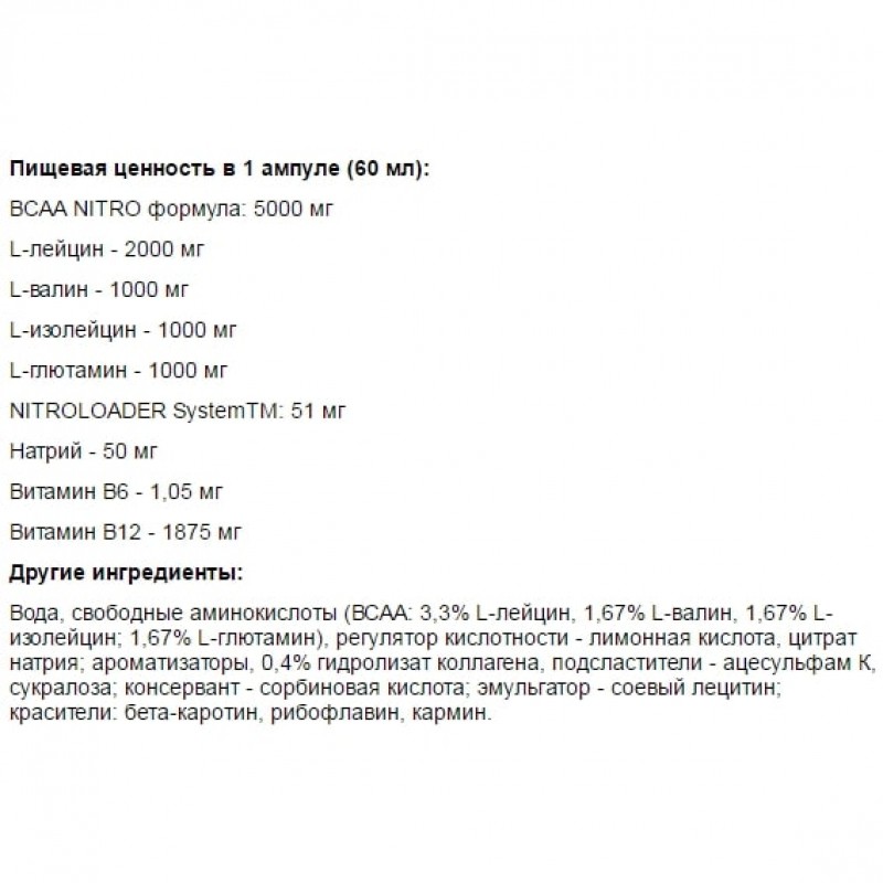 BCAA 4000 EXTREME Shot является новинкой от Olimp Labs, функциональный прорыв c использованиям и предоставлением аминокислот высокого качества в жидкой форме.Смесь высококачественных кристаллическо чистых аминокислот с разветвленной цепью (BCAA: L-лейцин, L-валин, и L-изолейцин) в идеальной пропорции 2:1:1 с добавлением L-глутамина. Они также содержат натрий и отдельные витамины, доступные в NITROLOADER SystemTM. Катионы некоторых металлов (например, натрия) и витамины принимают участие в транспорте аминокислот через биологические мембраны.