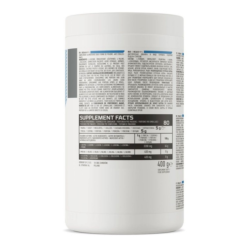 BCAA 8:1:1 Ostrovit - комплекс, состоящий из трех незаменимых аминокислот с разветвленными боковыми цепочками в соотношении 8-1-1: лейцин, изолейцин, валин. Аминокислоты с разветвленными боковыми цепочками - основной материал для построения мышечных тканей. Эти три аминокислоты составляют 35% всех аминокислот в мышцах и принимают важное участие в процессах анаболизма и восстановления, подавляют катаболические процессы. Незаменимые аминокислоты не могут синтезироваться в организме, поэтому человек их может получать только с пищей и со специальными добавками. Аминокислоты с разветвленными боковыми цепочками можно рассматривать как основное «топливо» для мышц, которое повышает спортивные показатели, улучшает состояние здоровья, к тому же они абсолютно безопасны для здоровья.