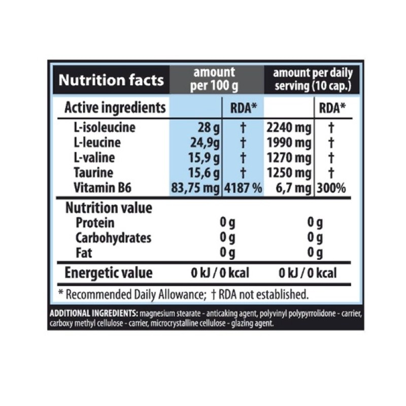 Super BCAA SYSTEM от Trec Nutrition – это биологически активная добавка, благодаря которой вы дополните свой ежедневный рацион аминокислотами BCAA. SUPER BCAA SYSTEM – это комплекс аминокислот с разветвленной цепью (L-изолейцин, L-лейцин и L-валин) в оптимальных пропорциях, обогащенный витаминами B6 и таурином. Препарат помогает улучшить спортивные показатели и способствует реализации важных процессов в организме человека.