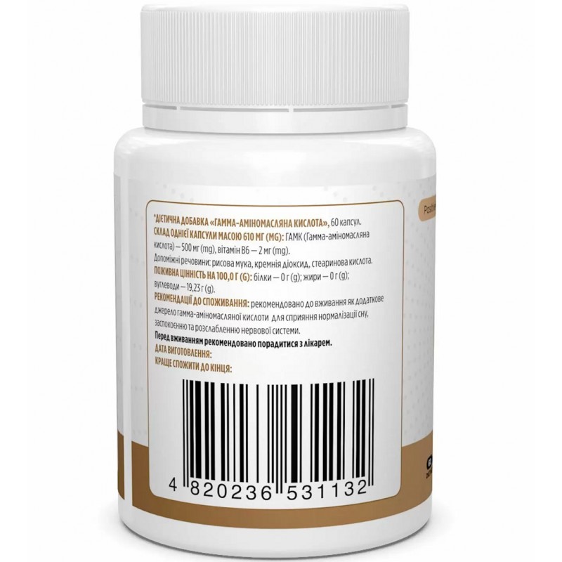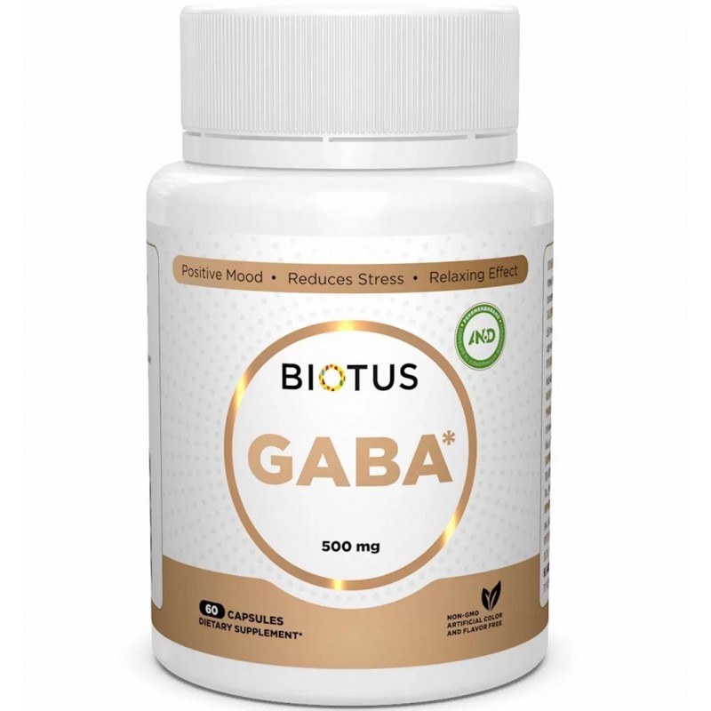 ГАМК (гамма-аминомасляная кислота), GABA, Biotus - это пищевая добавка от украинского производителя, которая содержит два ингредиента ГАМК и витамин В6, способствующих расслаблению ума и положительному настроению. Гамма-аминомасляная кислота – это аминокислота, которая естественным образом встречается в мозге человека, где она действует как тормозной нейромедиатор и является популярным ингредиентом, для снижения беспокойства и стресса. GABA является безопасным природным транквилизатором, медиатором центральной нервной системы, обладает успокаивающем и релаксирующем действием. Если мозг испытывает недостаток в ГАМК, могут возникать расстройства: тревожность, депрессия, судороги. Витамин В6 (пиридоксин) регулирует деятельность нервной системы, способствует повышению работоспособности мозга, улучшению памяти (участвует в процессе изготовления серотонина и норадреналина), повышению настроения и улучшения способности организма противостоять стрессовым ситуациям. При приёме перед тренировкой ГАМК создает анаболическое состояние, она способствует стимуляции синтеза гормона роста, который в свою очередь способствует росту мышц и утилизации жиров при физической активности. Прием добавки GABA от Biotus с витамином В6 способствует поддержке поддержке работы нейромедиаторов для регуляции сна, успокоения и расслабления нервной системы, в том числе и после нагрузок; способствует устранению головной боли и головокружения, сохранения умственной концентрации, улучшения памяти.