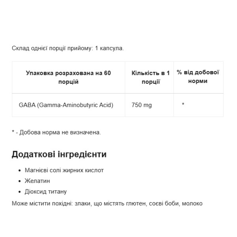 Activlab Gaba - это диетическая добавка с гамма аминомасляной кислотой, которая поддерживает функционирование и здоровье нервной системы. Этот тормозной нейромедиатор подавляет деятельность нервных клеток, снижает возбудимость и способствует расслаблению. Особой популярностью ГАМК пользуется в спорте, поскольку "переводит" организм после повышенных физических нагрузок в состояние покоя, облегчает засыпание и способствует ночной регенерации. Также эта добавка обладает анаболическим эффектом - стимулирует гипофиз к выработке гормона роста (соматотропина).