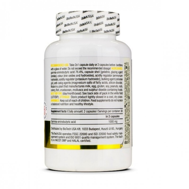 В суточной дозе из 2 капсул пищевой добавки GABA от BioTech содержится: