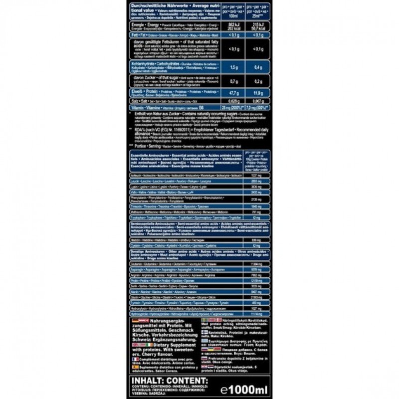 - Содержит полный спектр аминокислот, включая BCAA и глютамин