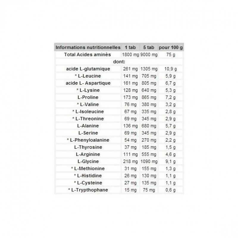 Аминокислотный профиль на порцию (6 таблеток):