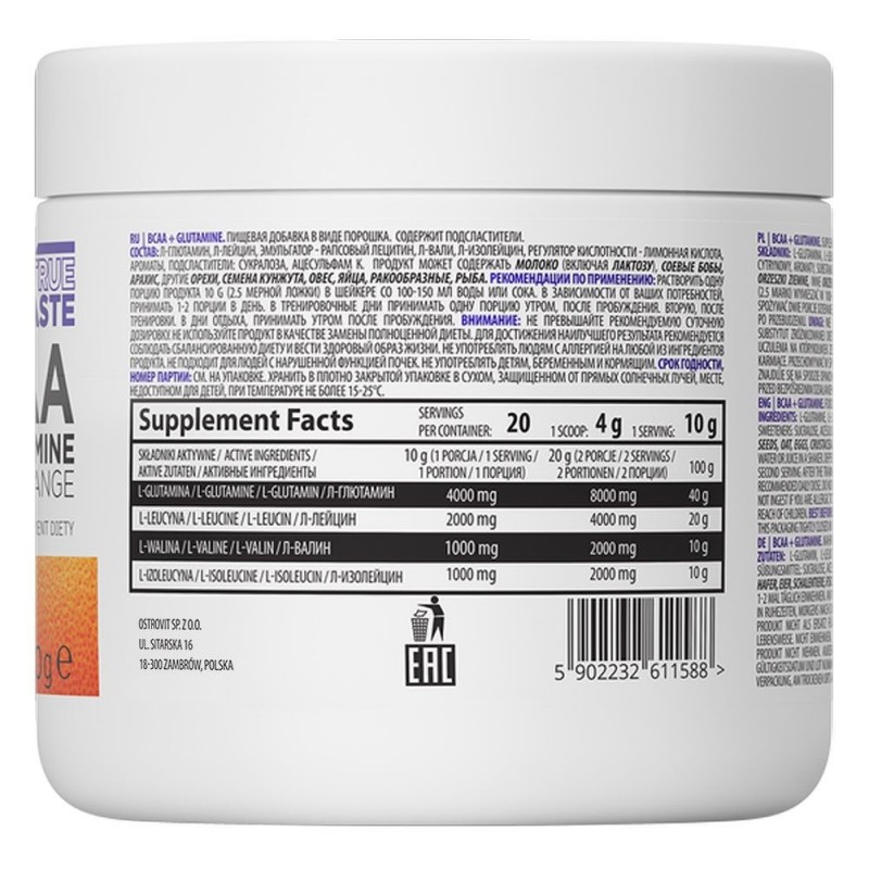 Способ применения BCAA + Glutamine Ostrovit и дозировка: в дни тренировок принимать две порции, сразу после пробуждения и после тренировки. В дни без тренировок принимать одну порцию сразу после пробуждения. Рекомендуется растворять в воде или любимом соке. Принимайте сразу после приготовления.