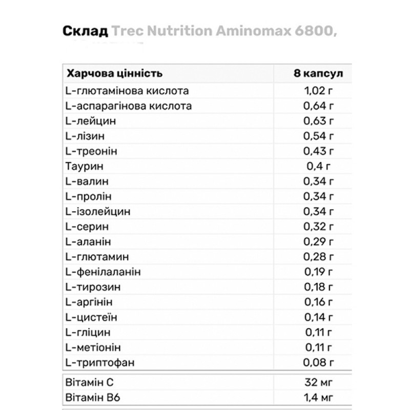 Trec Nutrition Aminomax 6800 — полноценный аминокислотный комплекс от европейского бренда спортивного питания. Прием добавки обеспечивает стабильный массонабор, улучшение общего самочувствия и быстрое восстановление после тренировок. Продукт подходит всем интенсивно тренирующимся совершеннолетним спортсменам.