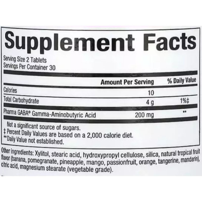 Гамма-аминомасляная кислота, сокращенно GABA, представляет собой аминокислоту, продуцируемую в мозге. Она образуется глутаминовой кислотой в организме с помощью витамина B6 и предотвращает сжигание нервных клеток. Прием GABA поможет вам расслабиться и успокоиться, позволит лучше сосредоточиться и поддержать сон.