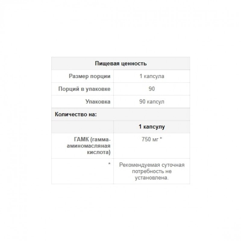 GABA 750 мг Puritan's Pride на порцию (1 капсула): Гамма-аминомасляная кислота - 750 мг