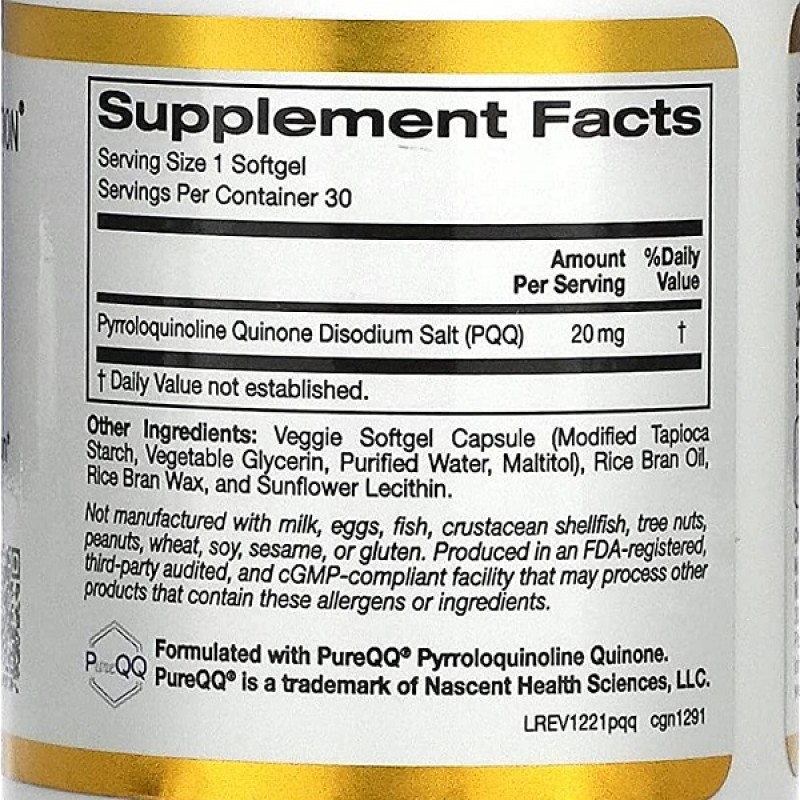 Пирролохинохинон, PQQ, California Gold Nutrition - антиоксидант, обладающий мощнейшим противоокислительным свойством, который обеспечит поддержку здоровья митохондрий. PQQ снижает воспаление в организме, даст возможность защитить митохондрии от окисления. Употребление PQQ в рацион важно для поддержки здорового роста, функционирования и обновления митохондрий, что сопровождается увеличением выработки энергии. Так как пирролохинохинон отвечает за здоровье митохондрий, а митохондрии расположенные в каждой клетке организма, то он положительно действует на функции всех клеток и систем организма. Он окажет укрепляющее действие на иммунную систему; защитное на нервную систему, снижая действие стресса; способствует улучшению репродуктивной функции; поддержке сердечной мышцы; поддержке нормальных уровней холестерина и сахара в крови. Пирролохинохинон имеет положительное действие на работу головного мозга, способствуя улучшению умственной активности, памяти, внимания. Как антиоксидант, он окажет омолаживающие свойства, задержит процессы старения и развитие метаболических нарушений. California Gold Nutrition содержит PureQQ® для улучшения общего качества жизни в любом возрасте.