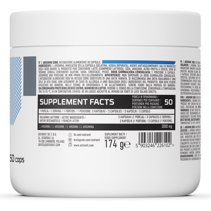 Ostrovit Arginine 3000mg – это высококонцентрированная добавка, содержащая 3000 мг L-аргинина в каждой порции.