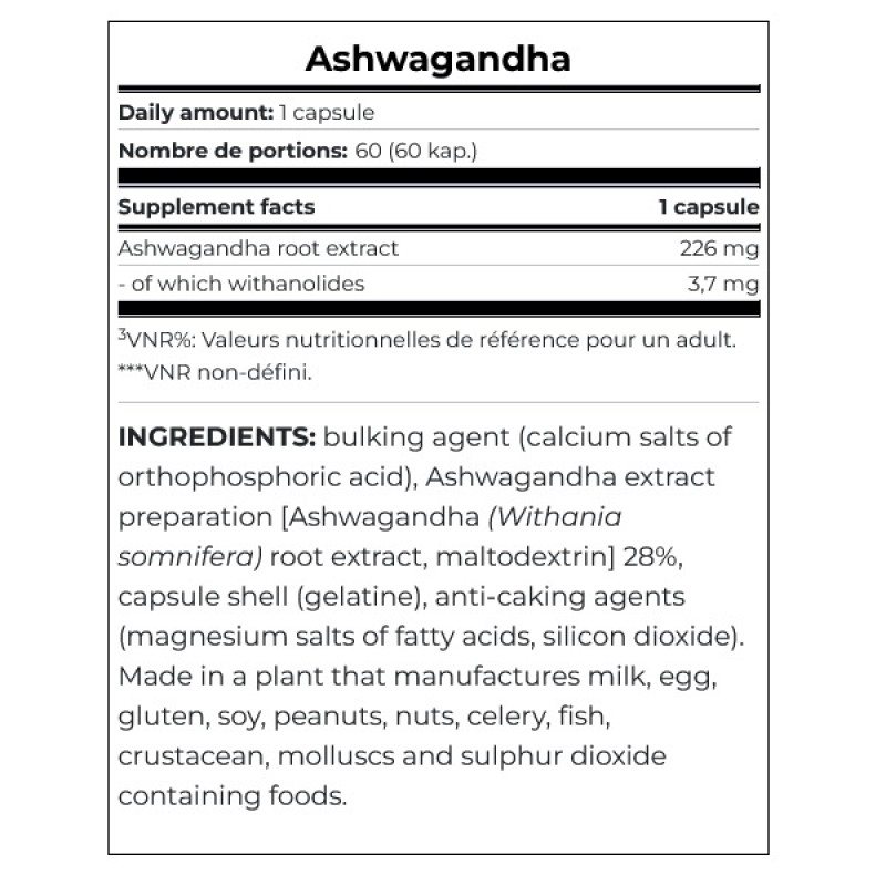 Scitec Nutrition, Ashwagandha — это пищевая добавка, содержащая экстракт ашваганды в форме капсул. Ашваганда благотворно влияет на организм с точки зрения самочувствия и стресса. Ашваганда – растительный адаптоген, который способствует снижению утомляемости, повышает умственную выносливость, а также благотворно влияет на концентрацию внимания и работу нервной системы. Ашваганда снижает уровень кортизола и тревогу, позволяя вам успокоиться и расслабиться. Способствует улучшению качества сна, избавляет от симптомов бессонницы и постоянных пробуждений в ночное время. Ашваганда - это мощный антиоксидант, защищающий клетки и ткани организма от негативного воздействия свободных радикалов и окислительного стресса, стимулирует иммунную систему, проявляя антибактериальное, противовирусное и противовоспалительное действие.