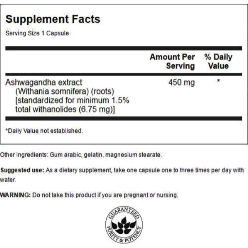 Ашвагандха - это мощная адаптогенная трава, котрая используетсяв Индии сотни лет для укрепления иммунной системы и поддержки функций организма, пострадавших от стресса. Ашвагандха, экстракт корня, помогает справиться со стрессом и чувством подавленности, нервным раздражением и беспокойством; позволяет адаптироваться организму к внешним воздействиям, повышает физическую и умственную работоспособность, способствует здоровому ответу организма на повседневный стресс и чрезмерную нагрузку; поддерживает физическое и психическое равновесие в норме, приводит в порядок нервную систему, укрепляет организм, дает ему энергию и помогает работе мозга, способствует хорошему сну и улучшает самочувствие в целом. Можно потреблять в небольших и регулярных дозах на протяжении всей жизни.