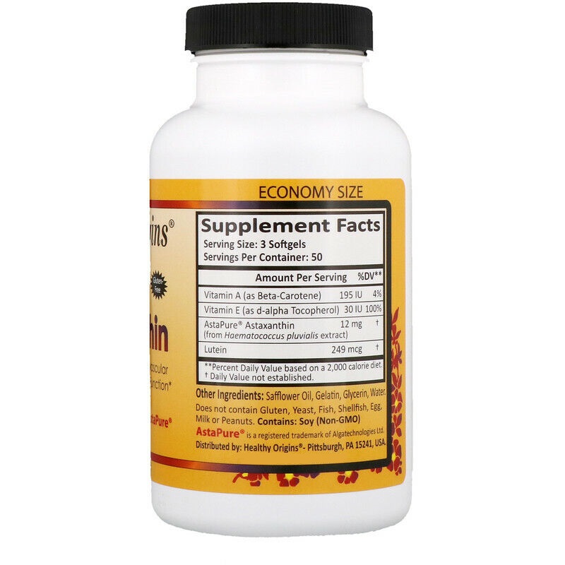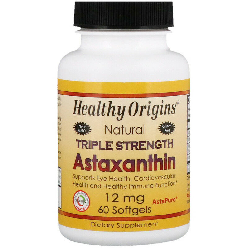 Натуральный астаксантин от Healthy Origins содержит натуральный астаксантин AstaPure и является каротиноидом, который врабатывается из микроводорослей Haematococcus pluvialis. Исследования показали, что потребление натурального астаксантина способствует здоровью суставов, глаз, сердечно-сосудистой и иммунной систем.