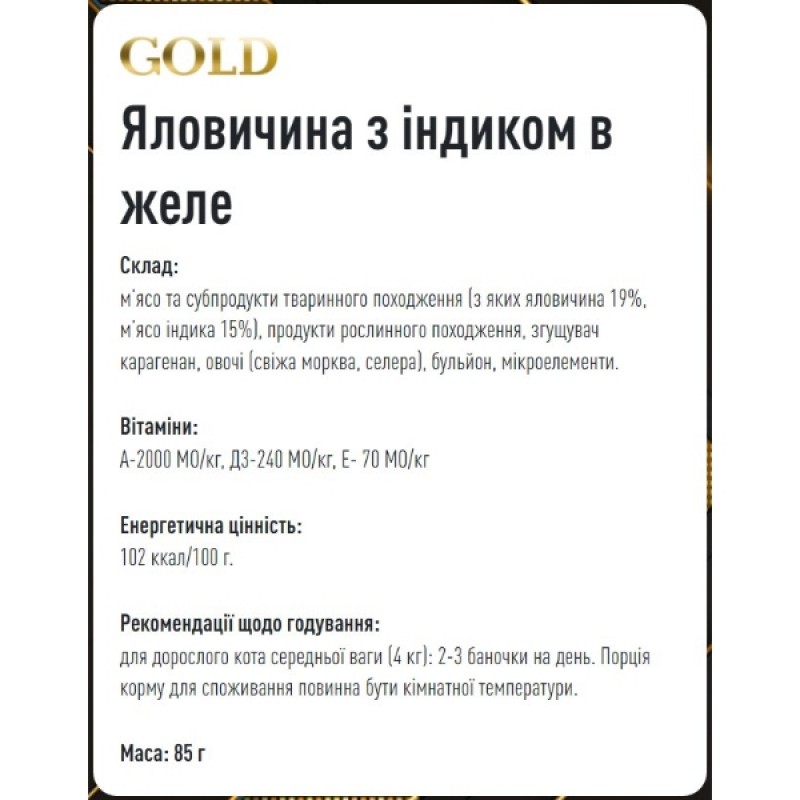 Basttet'o Gold для кошек Говядина с индюком в желе, жб 85 г