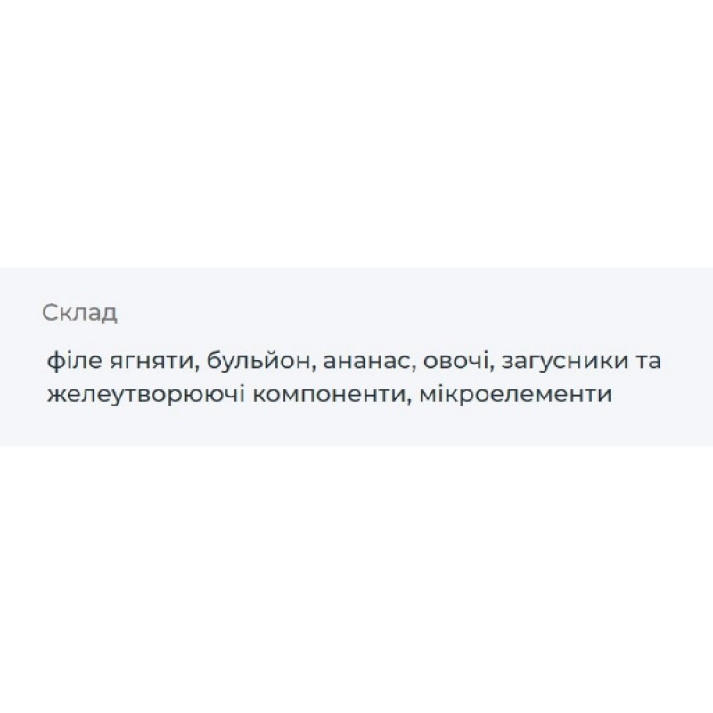 Полнорационный беззерновой влажный корм из аппетитных кусочков филе ягненка с ананасом для собак. Гипоаллергенный. Монопротеиновый.