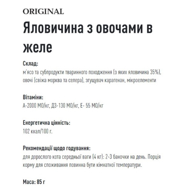 Basttet'o Original для кошек Говядина с овощами в желе, жб 85 г