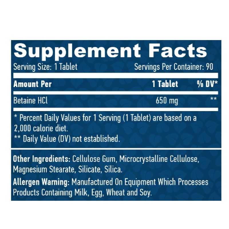 Betaine HCL Haya Labs – это продукт в виде удобных для проглатывания таблеток, который на 100% состоит из бетаина гидрохлорида. Бетаина гидрохлорид производят из сахарной свеклы. Главное действующее вещество данного препарата, оказывает гепатопротекторный, липолитический, пищеварительный ферментный и желчегонный эффект.