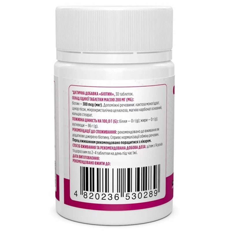 Биотин, Biotin, Biotus - это пищевая добавка от украинского производителя, которая является источником водорастворимого витамина, одного из восьми витаминов группы В, еще иногда называемого витамином Н или В7. Биологическая добавка "Биотин" настоятельно рекомендуется для людей с заболевание - диабет. Биотин является важным витамином, который играет роль в углеводном обмене, с его помощью улучшается обмен глюкозы у больных диабетом, стабилизирует уровень сахара в крови, улучшается усвоение белка. А также биотин учавствует в разложении жирных кислот и сжигании жира. Этот витамин преобразует пищу в энергию, путем превращения жиров и углеводов в глюкозу и белков в аминокислоты. Употребление данного витамина, в качестве биологически активной добавки, улучшает обменные процессы в организме, помогает нормализовать нервную систему, оздоровить костный мозг и все слизистые оболочки организма. При недостаточности биотина появляется раздражительность, нервозность, быстрая утомляемость, бессонница, потому прием этого витамина, от украинского производителя Biotus, поможет вам избавиться от этих симптомов.