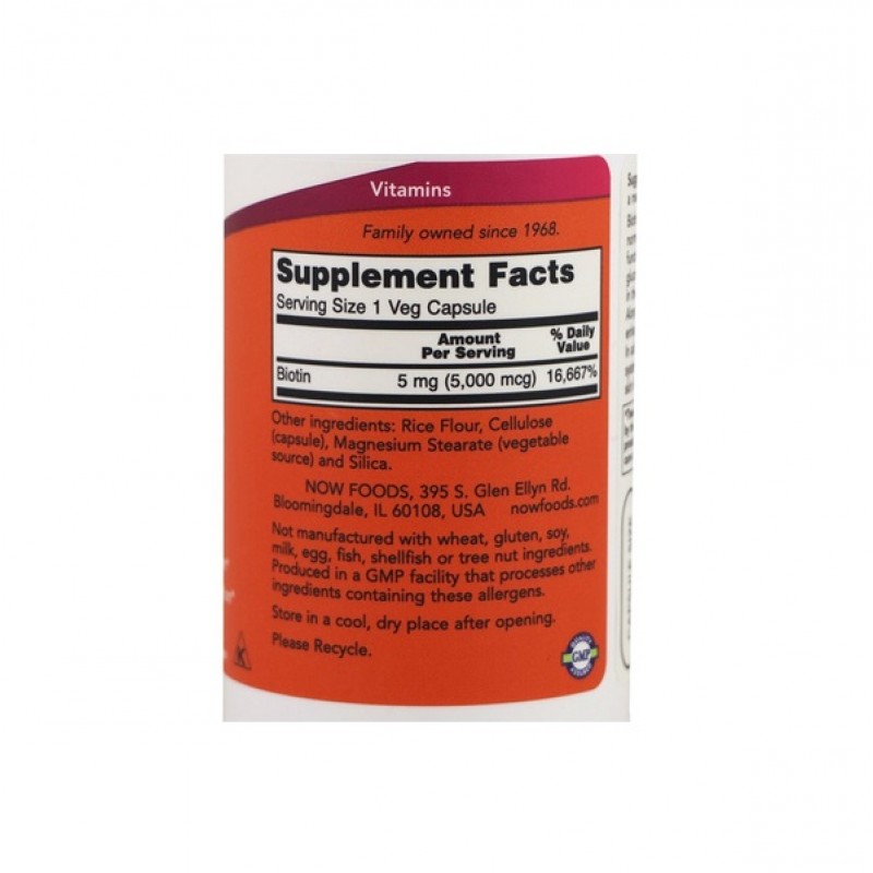 Biotin 1000 mcg NOW - уникальный продукт от компании NOW, который содержит Биотин (также известный как коэнзим R, витамин H или B7), играющий важную роль в процессе нормального роста и функционирования организма.