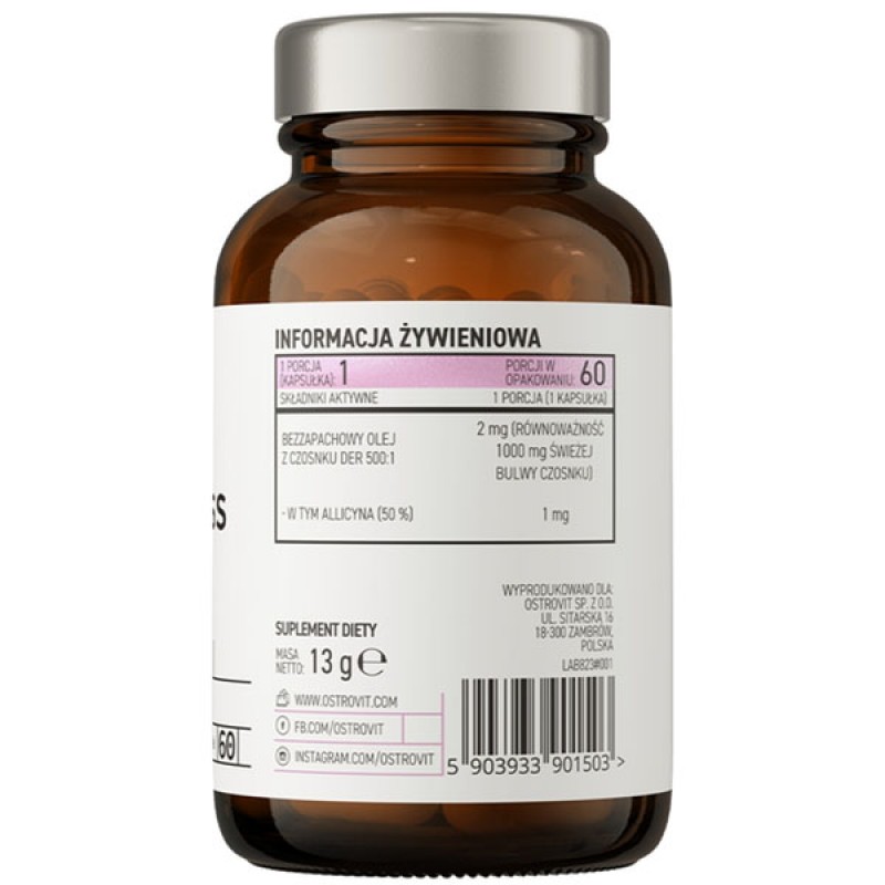 OstroVit Pharma Odorless Garlic – это высококачественный препарат на основе беззапахного чеснока, предназначенный для укрепления иммунной системы, поддержания здоровья сердца и сосудов, а также для общего улучшения состояния здоровья. Предназначен для тех, кто стремится поддерживать свой иммунитет, улучшить функцию сердечно-сосудистой системы и получить все полезные свойства чеснока без специфического запаха.