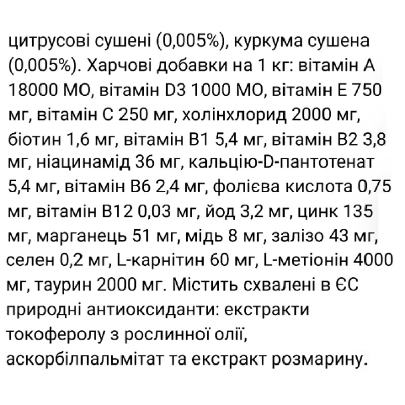 - В качестве природных антиоксидантов в состав корма добавлены розмарин, цитрусовые и куркума